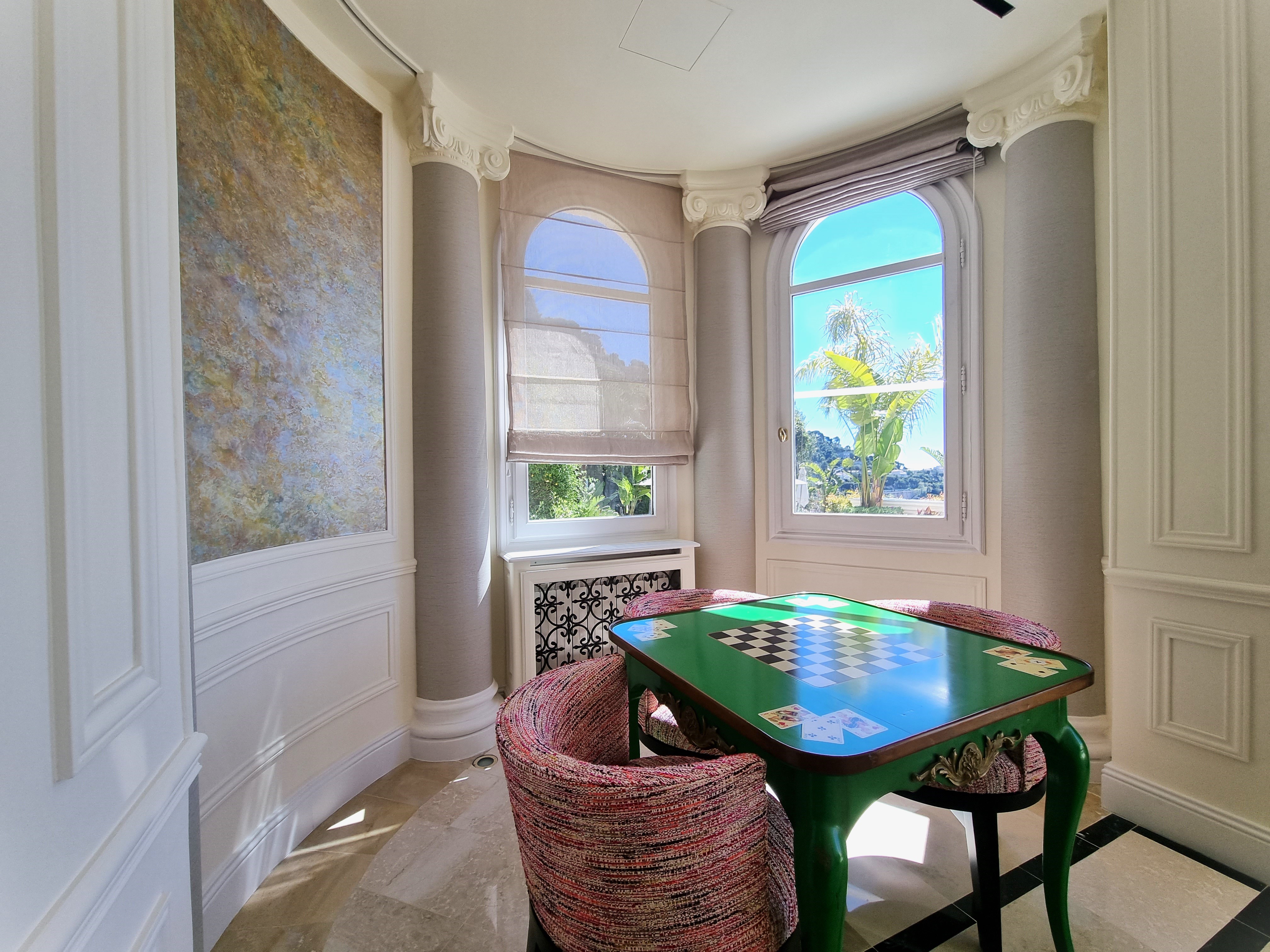The interior of the villa is inviting, with cozy décor, breathtaking views and spacious rooms.
